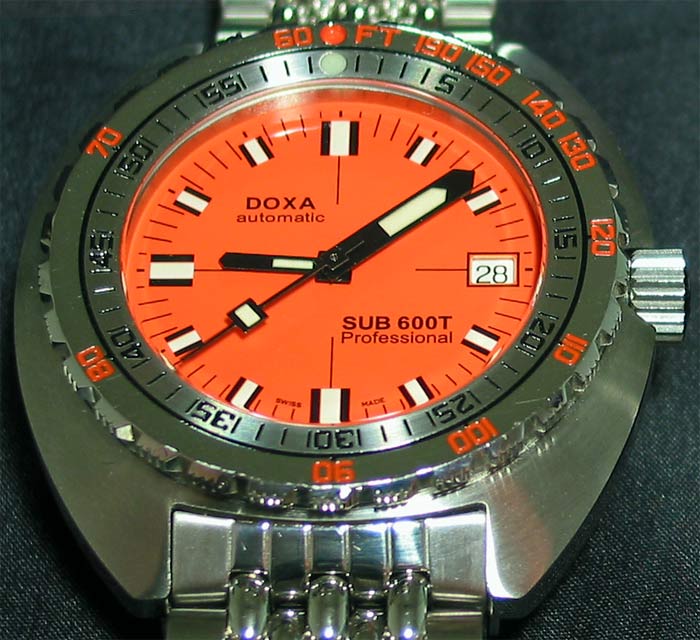 Without doubt, Doxa are more famous for their orange dial diving watch than any of the other models they have made in their long history. They set the standard for legibility with the simple orange dial and luminous markers and added an innovative bezel which incorporated a Non Decompression dive table. The SUB 300T was further ensconced in history by best selling author Dr. Clive Cussler, who's adventure hero; Dirk Pitt, used his trusty Doxa in almost all the novels he appeared in. At the time of writing, a movie based on Cussler's book Sahara is being filmed and Doxa donated orange SUB 600T watches to the main characters in the movie (Matthew McConaughey plays Dirk Pitt). If the film is a hit, there is a fair chance that quite a few more people will get bitten by the Doxa orangitis fever and want one of Dirk Pitt's orange watches.